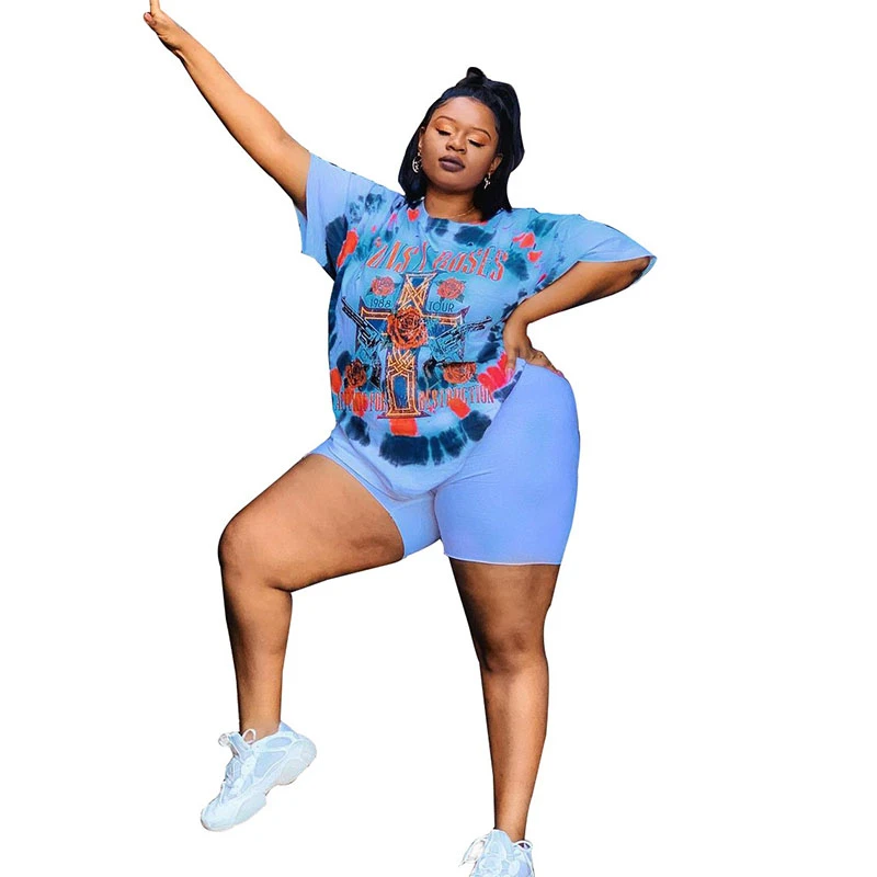 Summer Outfits Femme Blue Tshirt And Biker Shorts Sets Tracksuit Plus Size Women Clothing Two Piece Set Wholesale Dropshipping Plus Size Sets Aliexpress
